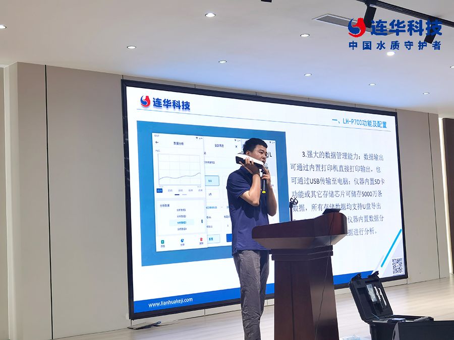 培訓(xùn)過(guò)程中,連華科技作為業(yè)內(nèi)知名的水質(zhì)檢測(cè)儀器及耗材生產(chǎn)廠家,對(duì)清瀾系列便攜式水質(zhì)測(cè)定儀LH-P700進(jìn)行了詳細(xì)的介紹和培訓(xùn)。上午的理論培訓(xùn)環(huán)節(jié),連華科技技術(shù)人員對(duì)水質(zhì)測(cè)定儀的原理、功能、常規(guī)污染指標(biāo)實(shí)驗(yàn)操作方法及注意事項(xiàng)進(jìn)行了全面系統(tǒng)的講解,讓參訓(xùn)人員對(duì)LH-P700這款水質(zhì)測(cè)定儀有了更加深入的了解。