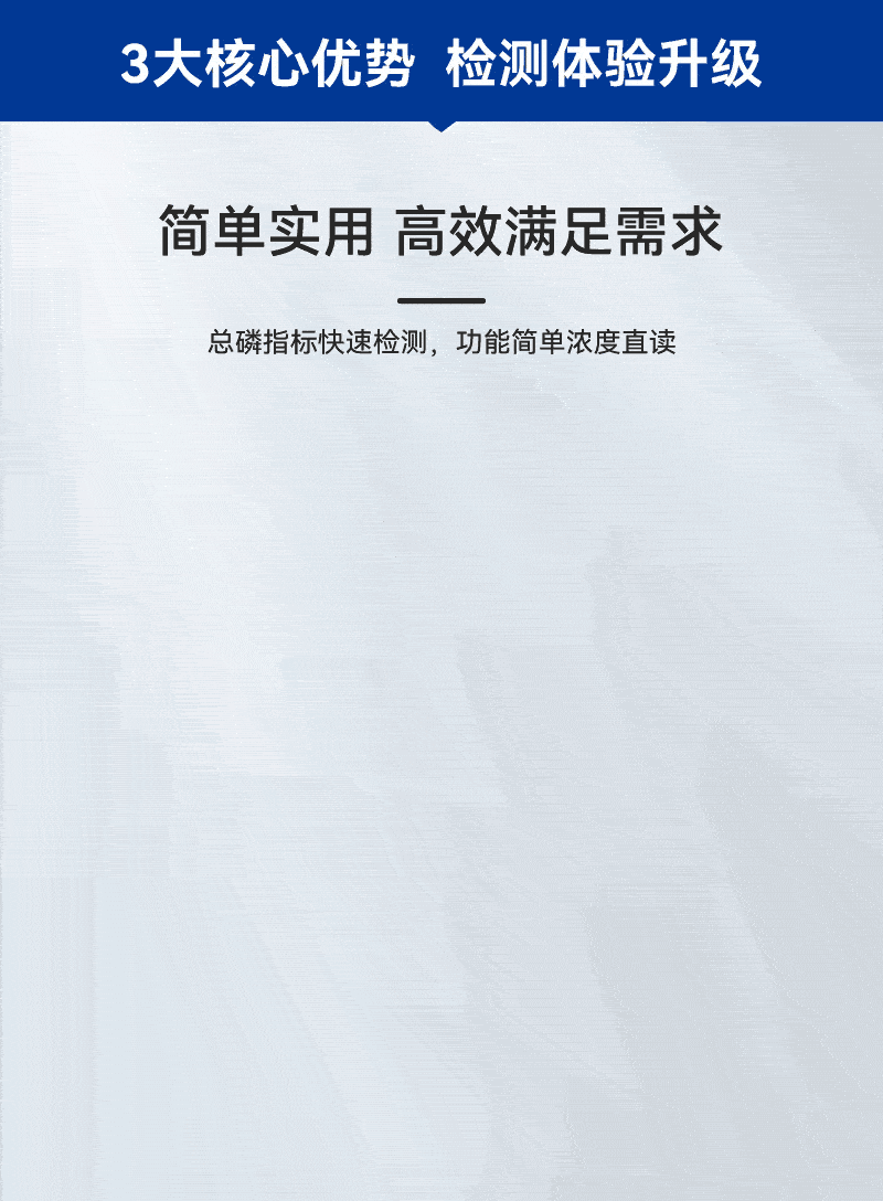1、簡(jiǎn)單實(shí)用高效滿足需求,總磷指標(biāo)快速檢測(cè),功能簡(jiǎn)單濃度直讀