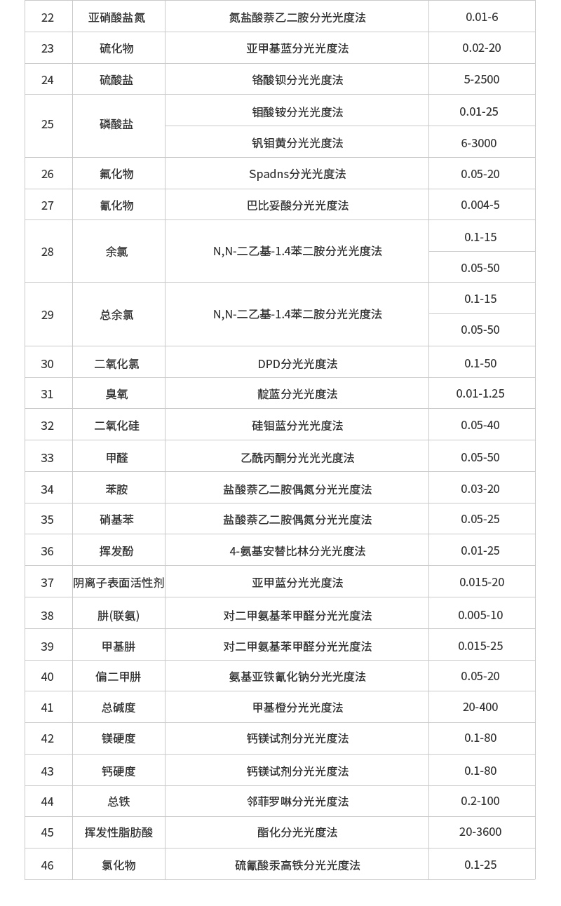 檢測限:COD高量程3mg/L;COD低量程0.5mg/L