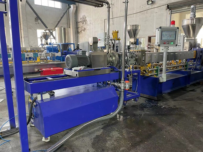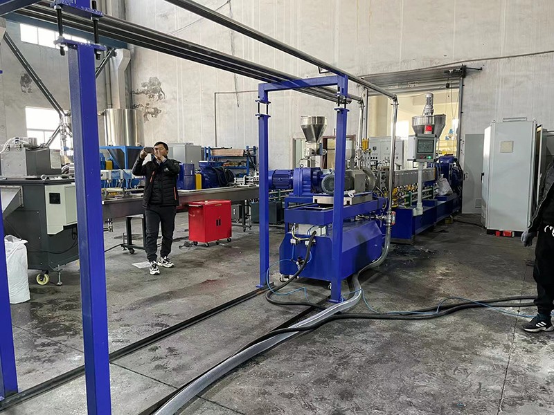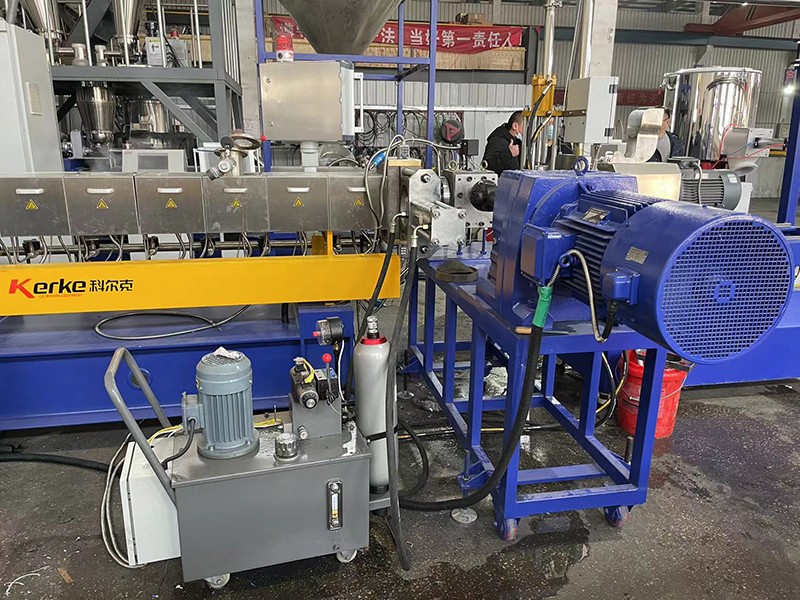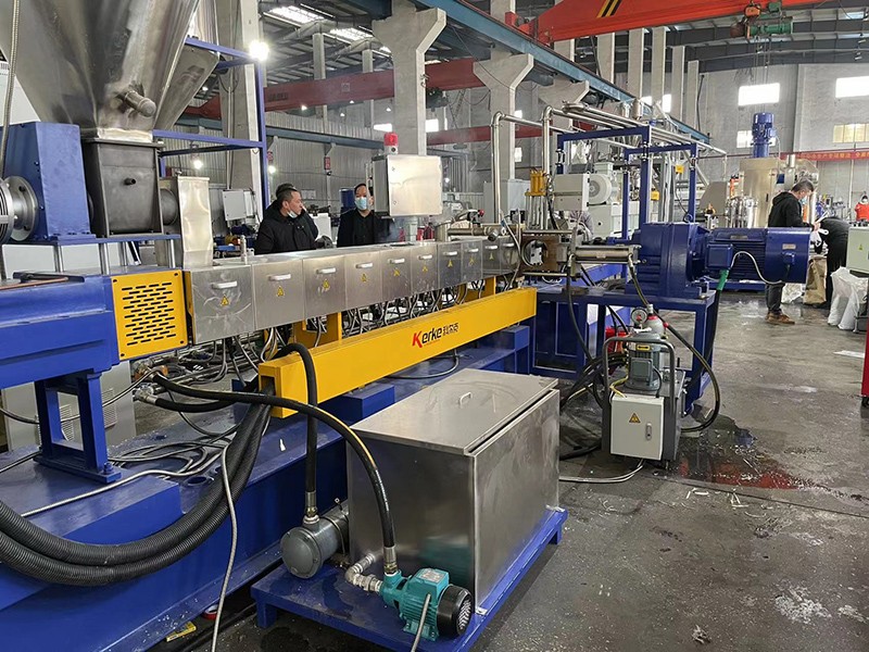 驗收PVB夾膠玻璃回收造粒-KTE-75D雙螺桿水下切造粒機組